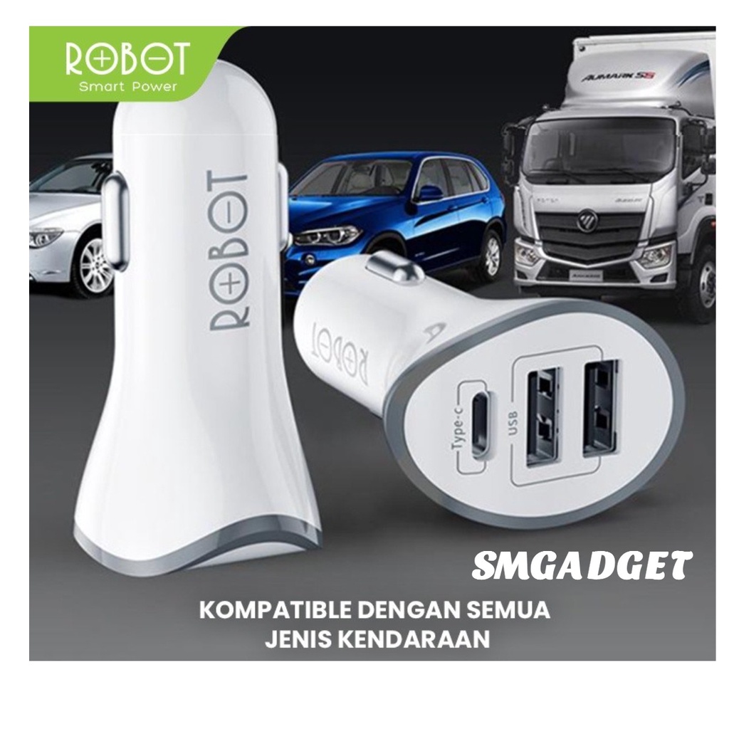 Cas ROBOT RT-C08 Car Charger Colokan Mobil Motor 3 Port USB & Type C