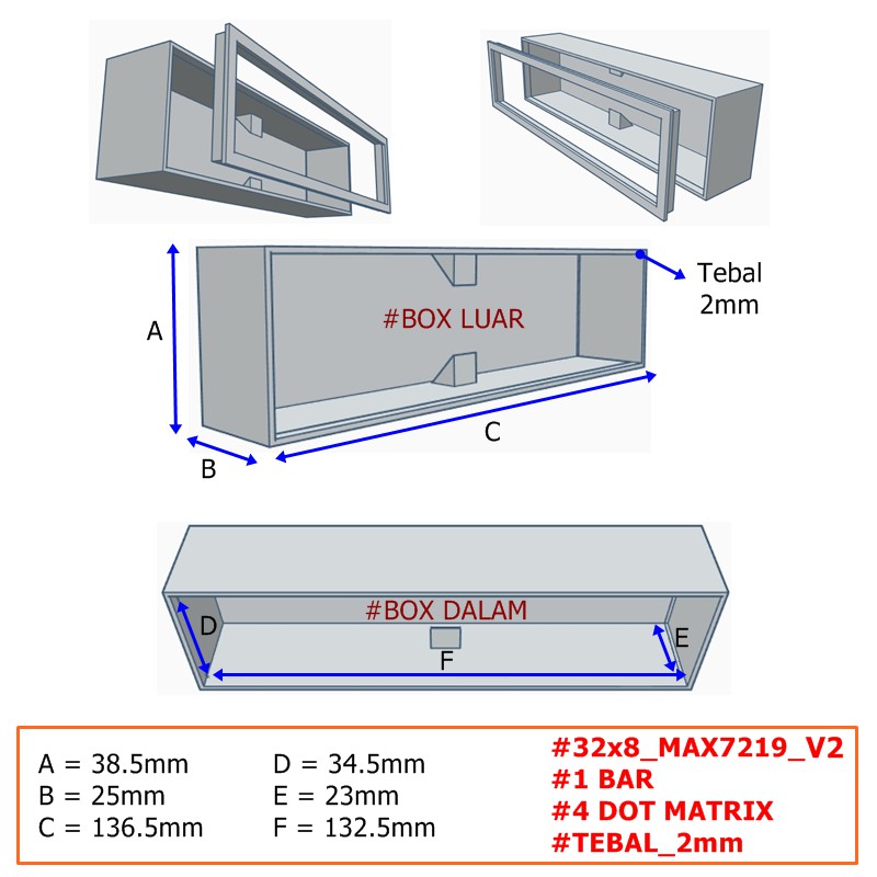 Case Casing Cover Frame Module LED Max7219 Dot Matrix 32x8 V2