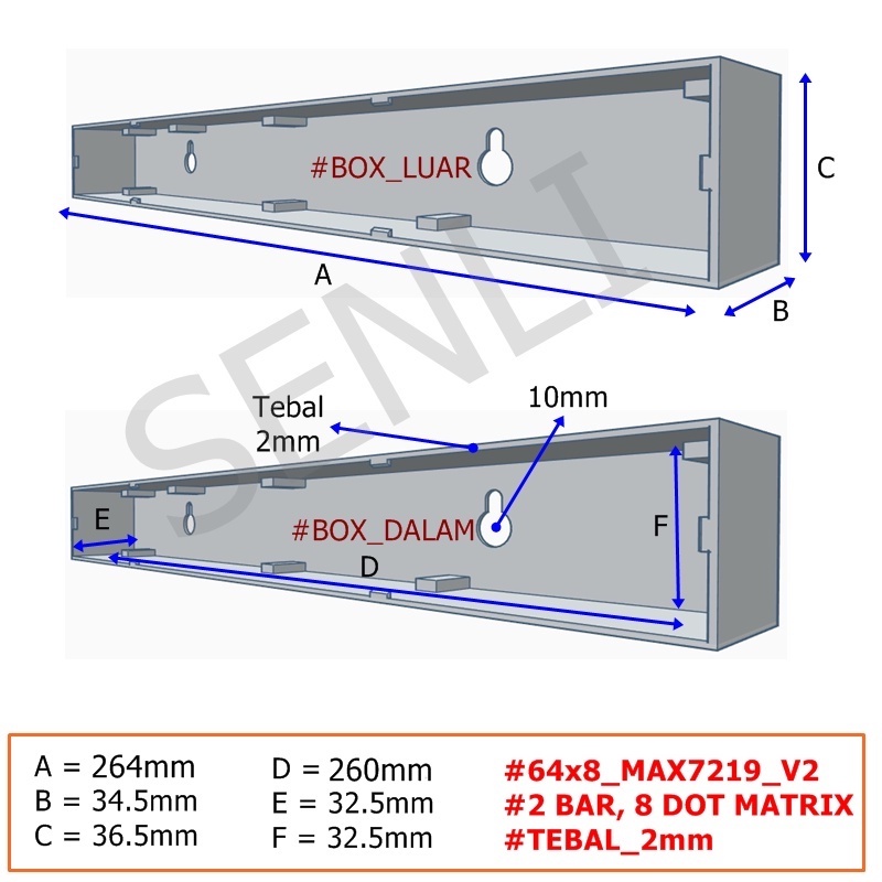 Case Casing Cover Frame Module LED Max7219 Dot Matrix 64x8 V2