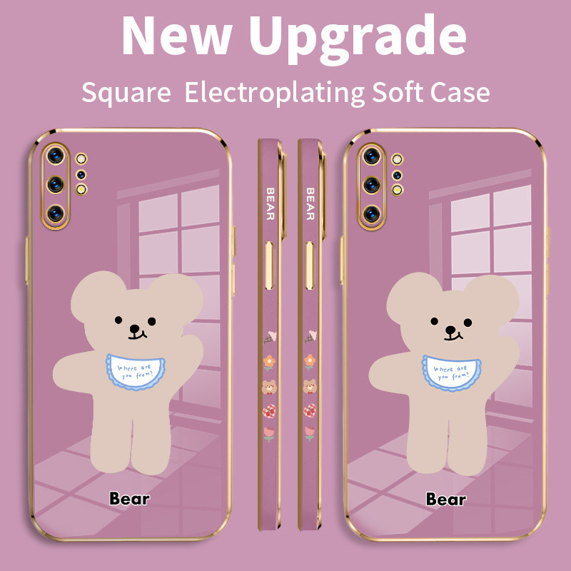 Case HP For Samsung Note 10 Plus Note 10 4G 5G For Samsung Note 10 Lite Note 10 Pro For Samsung Note10 + samaung Note10 Lite Casing Softcase Kesing Lucu Phone Cesing Soft Cassing untuk Beruang Saku Kotak-kotak Biru Kasing Sofcase Chasing