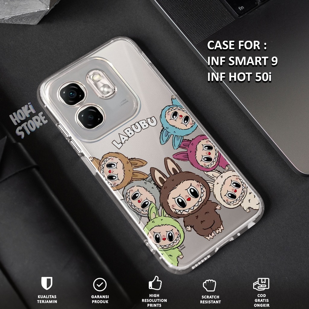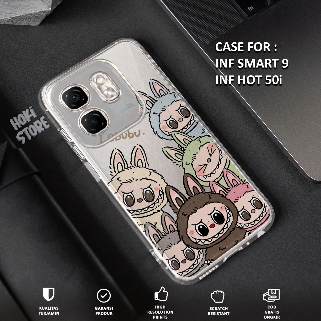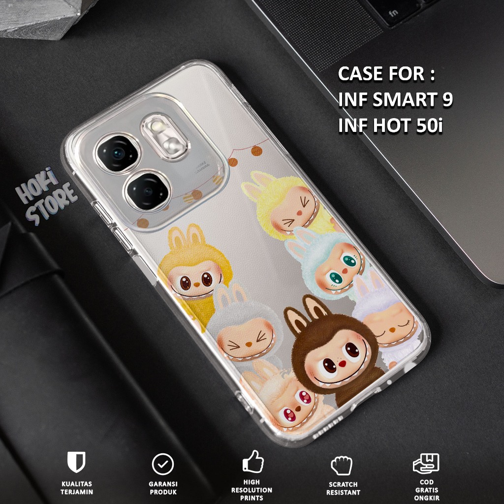 Case INFINIX SMART 9 - Casing INFINIX HOT 50i Motif LABUBU - Clear Fourside TPU Softcase Bening Tebal - Casing Hp Premium HD - Kesing terbaru 2024