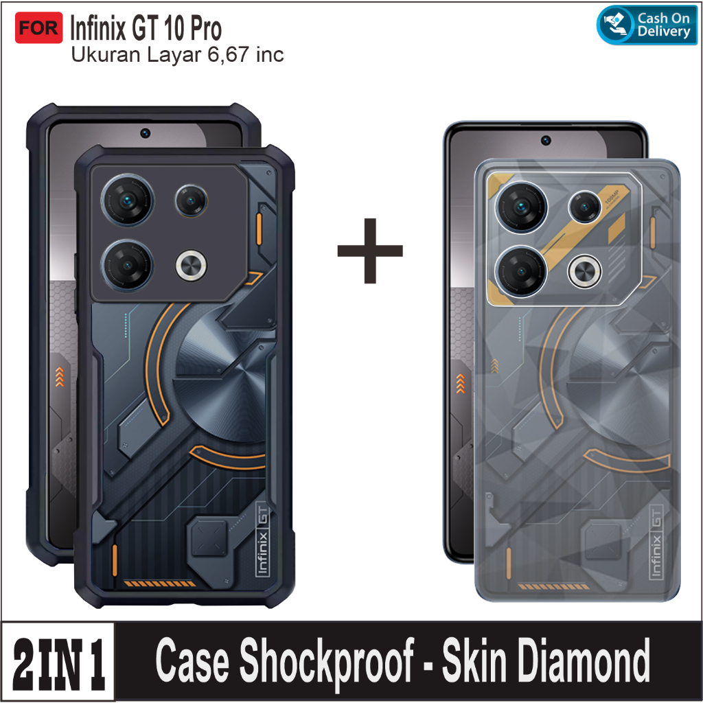 Case Infinix GT 10 Pro Paket 2in1 Hardcase Armor Shockproof Free Skin Carbon