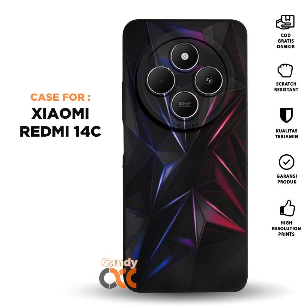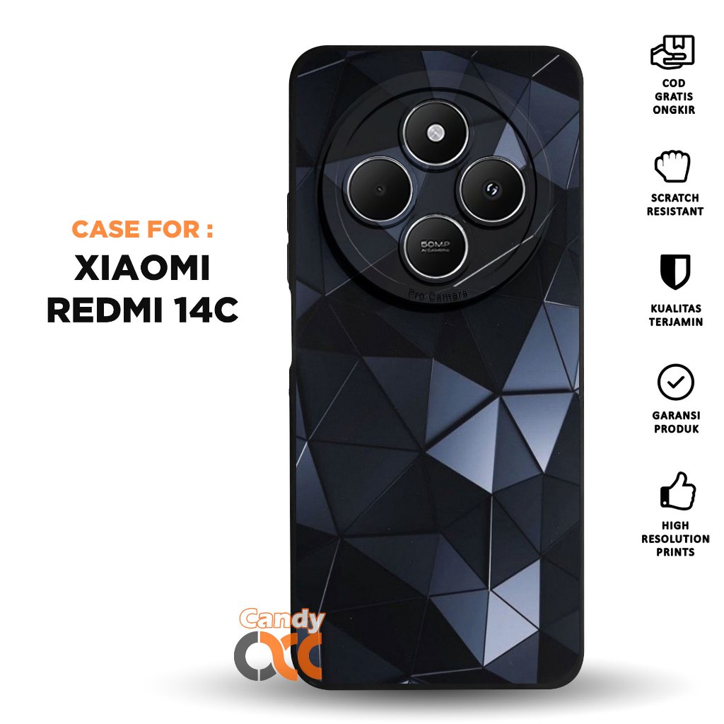 Case XIAOMI REDMI 14C - Casing Motif ABSTRAK - Softcase Premium Black Matte - Hitam Pro Camera - Silikon HP - Kesing - Cassing - Case Terbaru