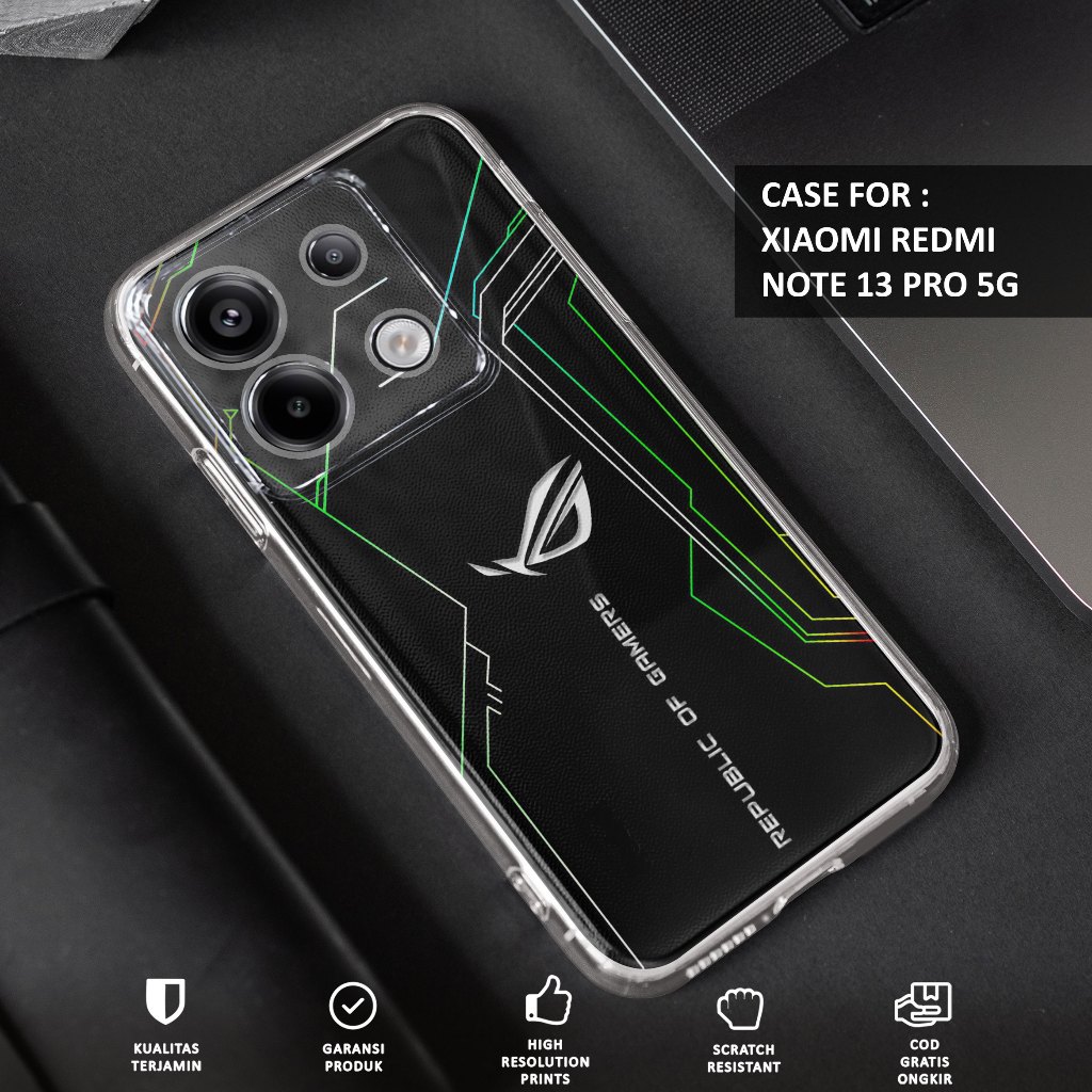 Case XIAOMI REDMI NOTE 13 PRO 5G 2024 - Casing XIAOMI REDMI NOTE 13 PRO 5G Motif ( ROG ) - Softcase Premium Fourside - Bening Transparant - Silikon HP - Kesing - Cassing - Case Terbaru 2024