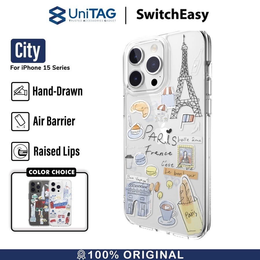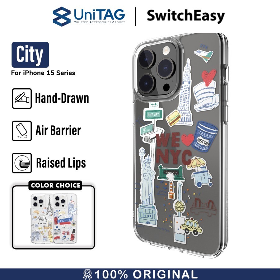 Case iPhone 15 Pro Max Plus SwitchEasy City Slim Motif Clear Casing by UniTAG