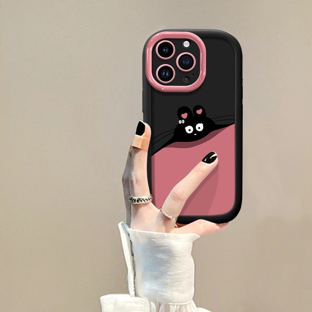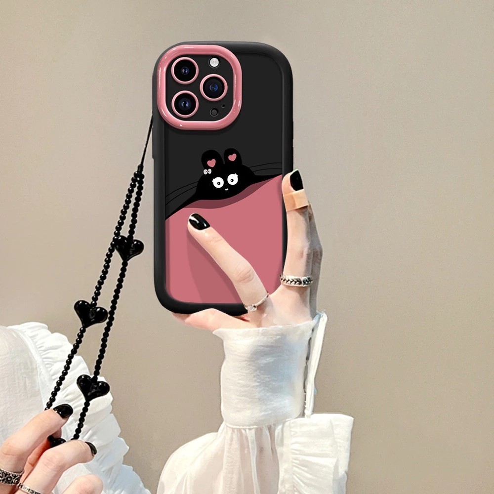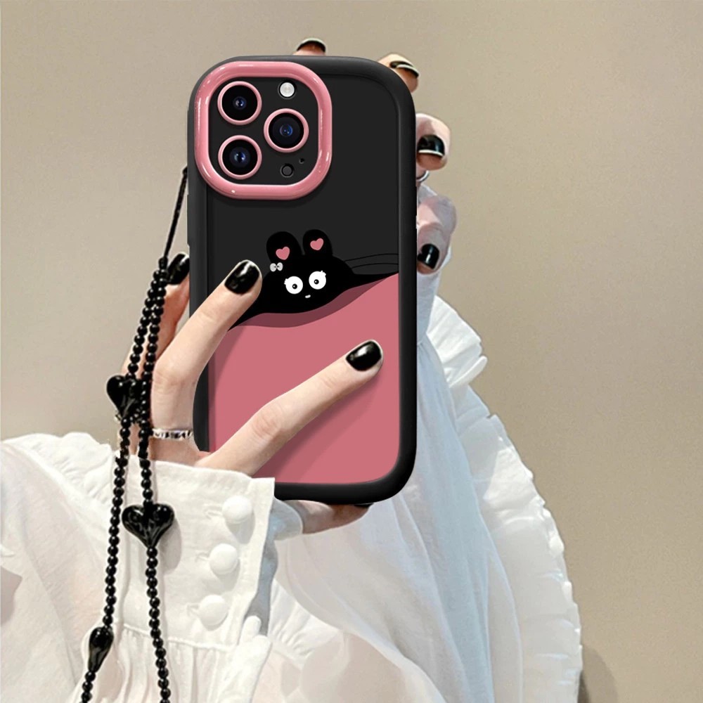 Case untuk OPPO A38 A18 A57 A77 A16 A16S A7 A5S A12 A53 A53S A15 A15S A35 A17 A17K A58 A54 A74 A8 A31 A36 A76 A96 A78 A5 A3S A55 A9 A11 A11X A16K A94 A96 A95 A1K A1 A3S A79 A15S A35 A54S Casing ponsel kelinci hitam merah muda lucu anti jatuh cover 001498