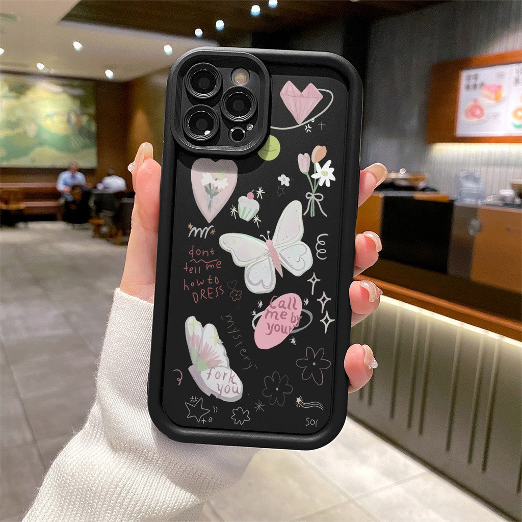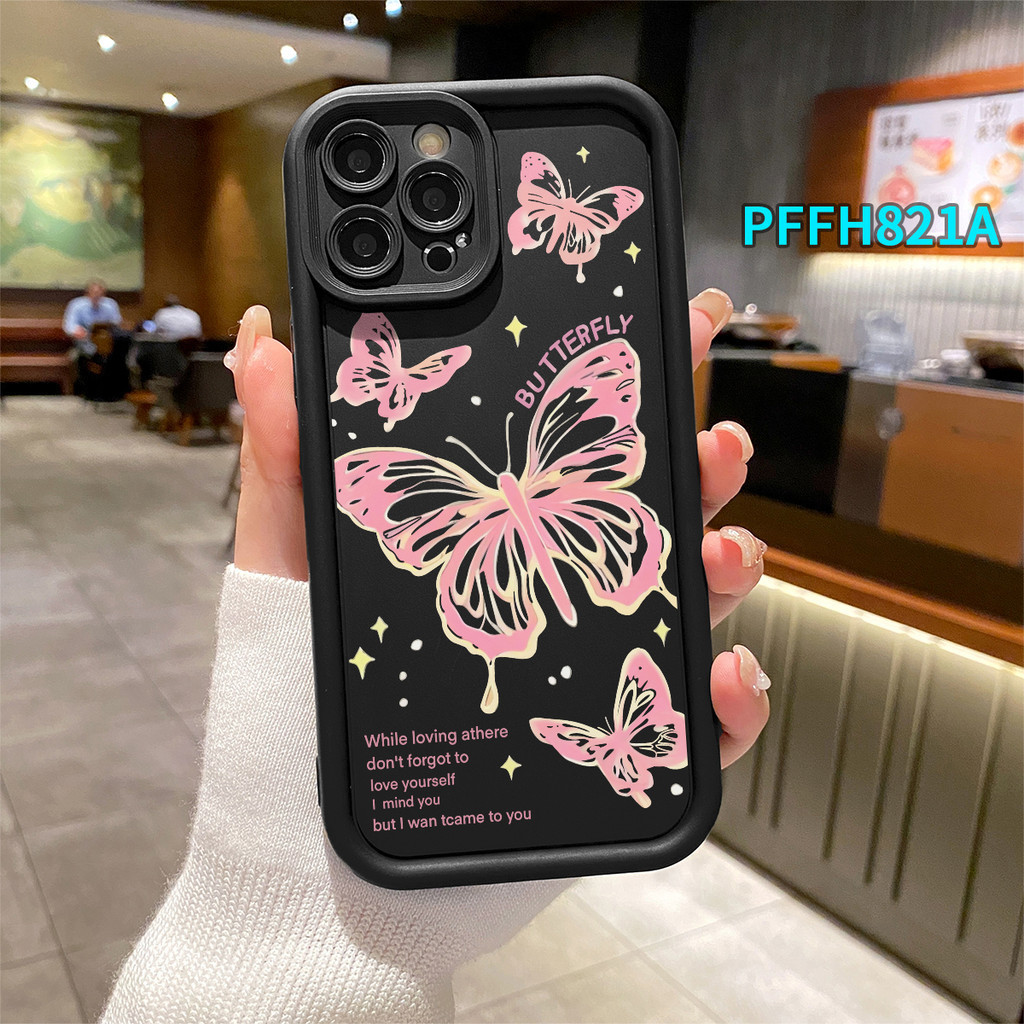 Casebeauty Untuk Oppo A57 2022 A18 A15 A17 A12 A38 A5s A16 A54 A7 A58 A3s A95 A17K A9 A53 A5 2020 A31 A16K A55 A98 A76 A78 A52 A74 A96 Reno 5F 5 8T 6 8Z 6Z 4 Ins Ilustrasi Kartun Grafiti Bunga Fantastis Kupu kupu Merah Muda Casing Belakang Lembut Case