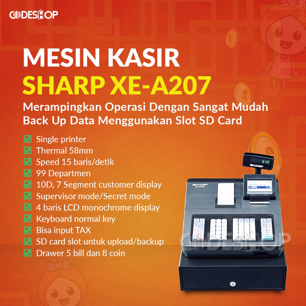 Cash Register SHARP XE-A207B Mesin Kasir Restoran Cafe