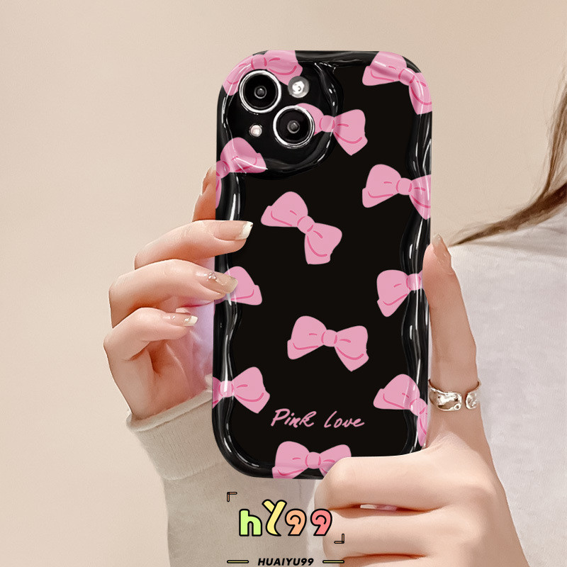 Casing Bintang Simpul Pita Hati Cinta Merah Muda Lucu Untuk OPPO A38 A18 A15 A57 A78 A95 A7 A55 A53 A17K A17 A96 A98 A16 A74 A1K A31 A58 A54s A54 A16K A52 A76 A5 A9 A3s A16E A5s A12 Reno 8T 6 4 5 7Z 5F Soft Cover Tepi Melengkung Bergelombang
