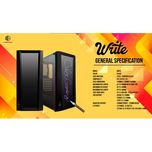 Casing Cube Gaming WRITE Casing PC Free Spidol dan Kain CASING PC GAMING