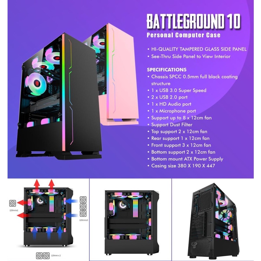 Casing Gaming Simbadda Battleground 10 Case PC Gaming RGB No PSU