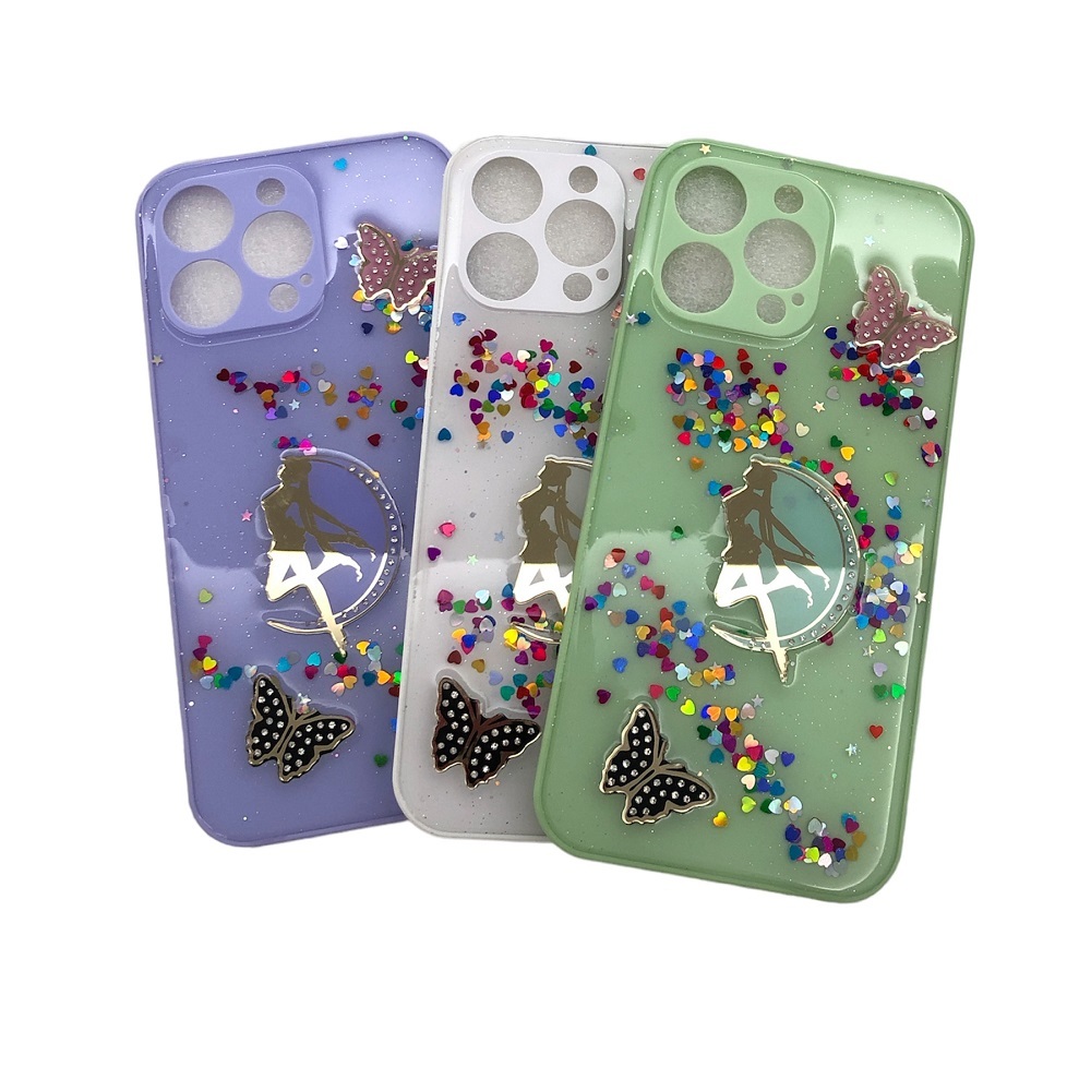 Casing HP Iphone 15 15 Pro 15 Plus 15 Pro Max Motif Gliter Kupu Kupu