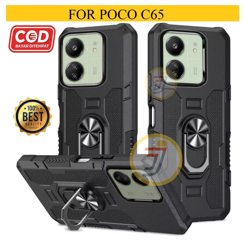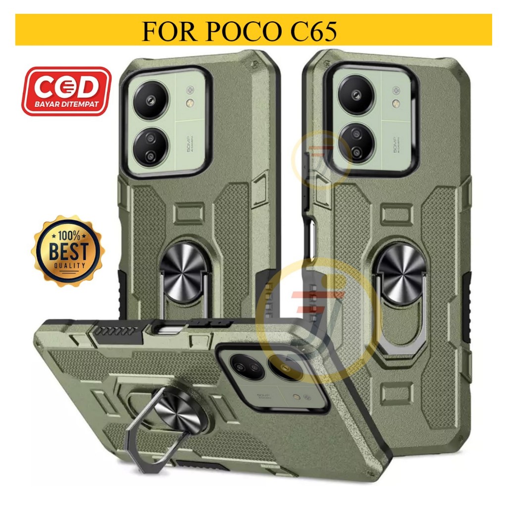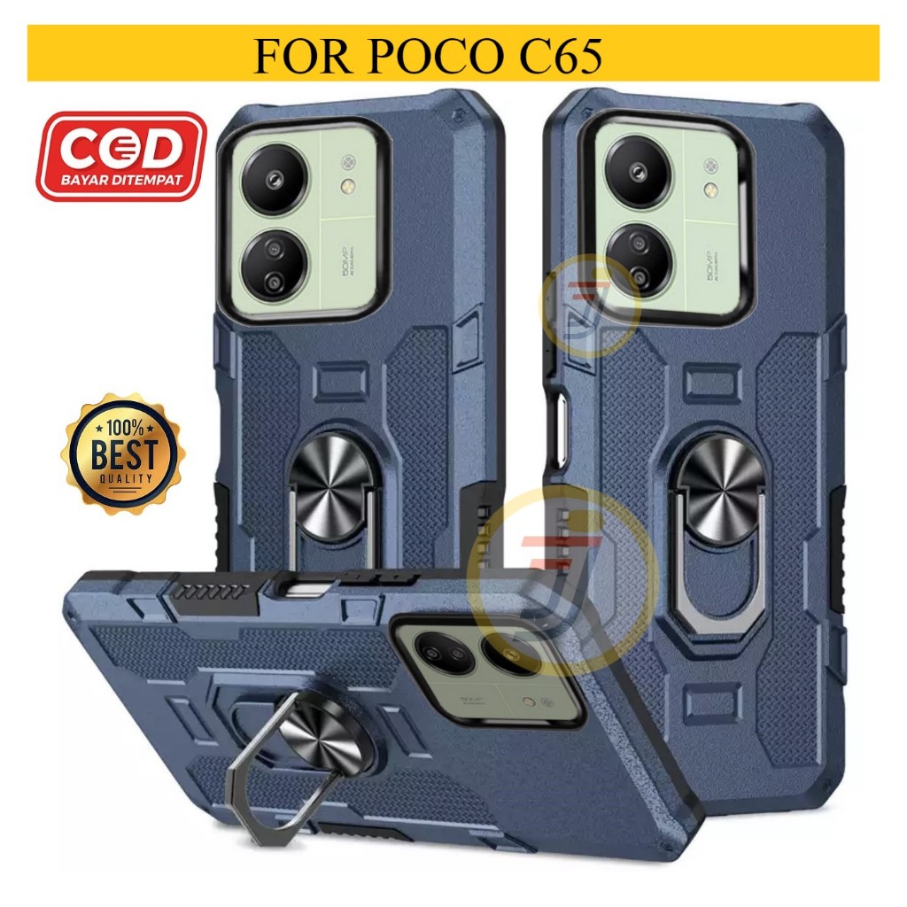 Casing Hard Case Untuk Xiaomi Poco C65 Premium Armor Ring Robot Case Kickstand Hybrid/Ring Holder