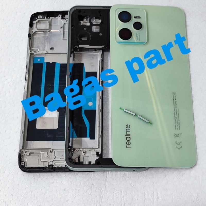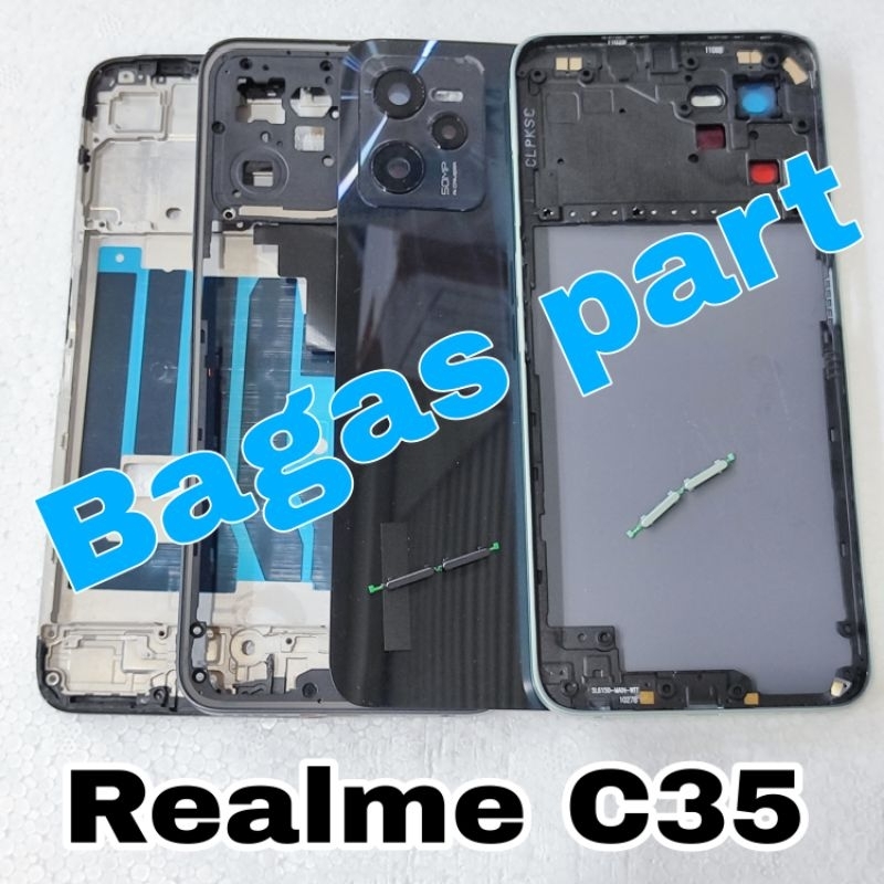 Casing Housing Kesing Fullset Realme C35 ada 3 bagian Backdor + Bezzel tulang Tenah + Frame Tatakan Lcd Ring Kaca Kamera Tombol Luar Volume