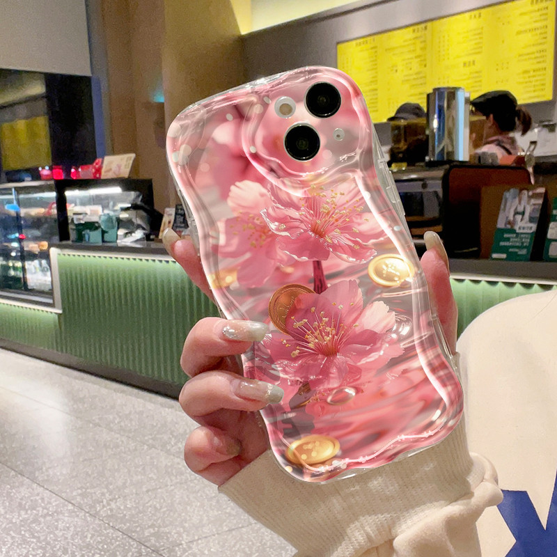 Casing Hp OPPO A58 4G A78 4G Case pola bunga persik HP Casing pelindung ponsel tepi gelombang tekstur Softcase lembut warna-warni terbaru aesthetic Kesing