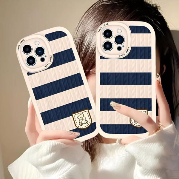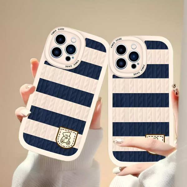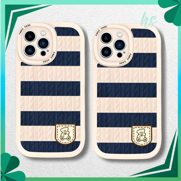 Casing Hp Redmi A1 A1+ A2 A2+ 12C 9A 9C 10A 10 5G 12C Note 7 8 9A 10 13 9 12 4G 5G 10S Poco X3 NFC X3 C55 Silicon Case FNKO Strip Bear Softcase Garis Biru Putih Menyamping Horizontal