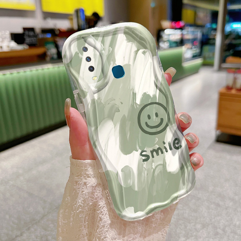 Casing Hp VIVO Y12 Y15 Y17 Y17s Y12i Y27 Y16 Y35 Y56 5G Y3 Y3s 2020 Y35+ 5G Case hp lunak cangkang lunak Casing silikon Anti drop Kesing ponsel pola senyum hijau Softcase