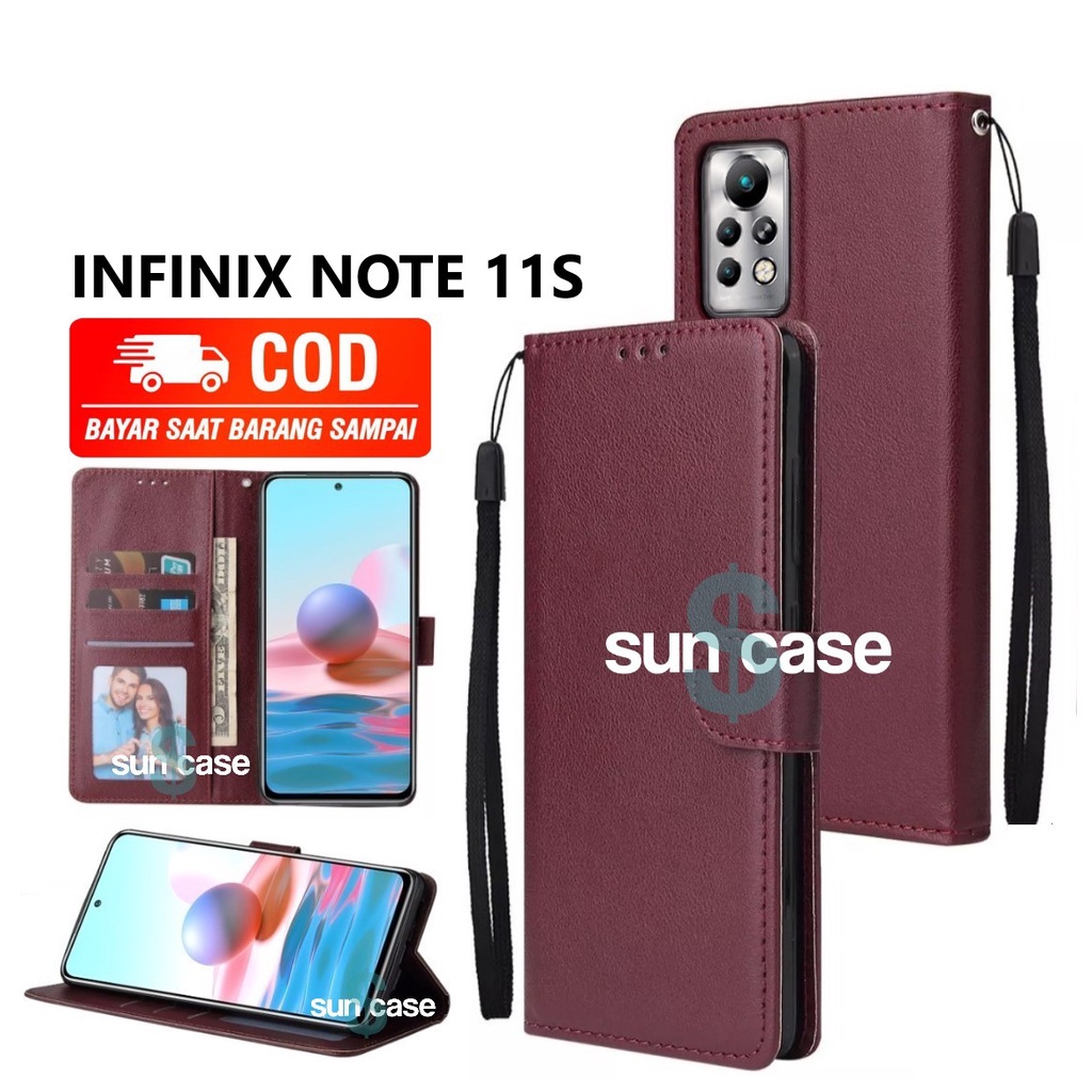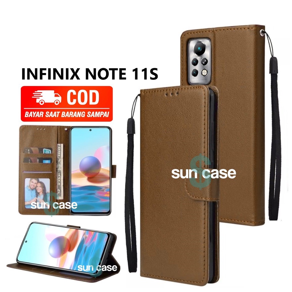 Casing INFINIX NOTE 11S model flip buka tutup case kulit ada tempat foto dan kartu juga tali hp flip cover