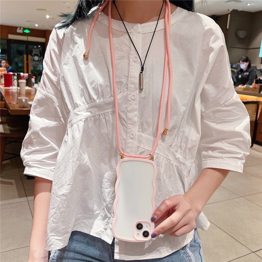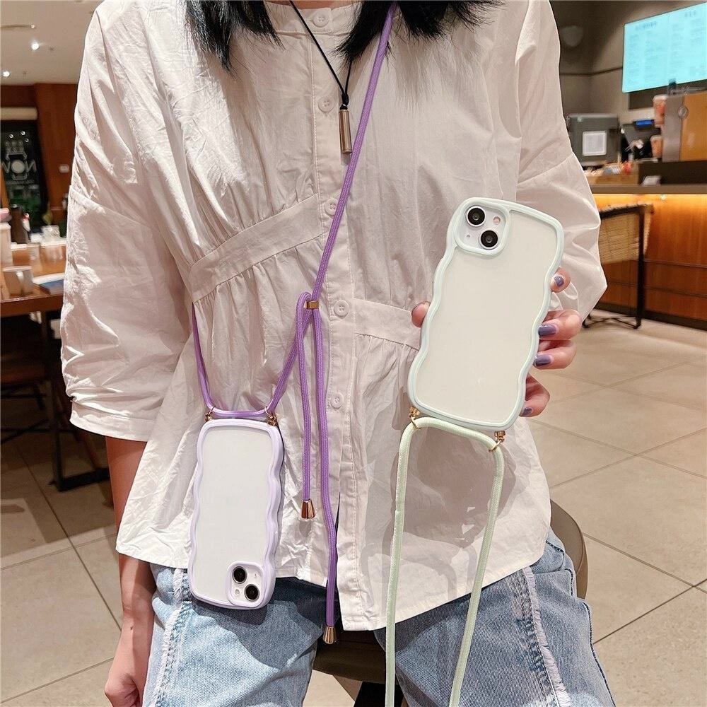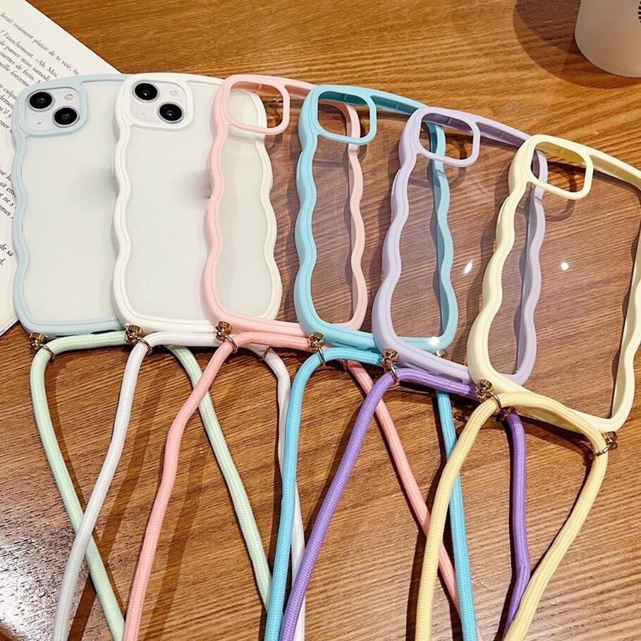 Casing IPHONE 14 PRO MAX PLUS 14 PRO 11 PRO MAX 12 12 PRO MAX 12 X XS XR Series Sling Case Tali Lanyard Softcase Candy Clear Wavy Side Bumper Covered
