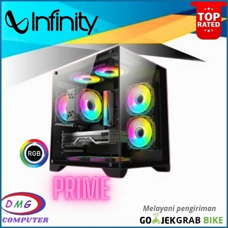 Casing Infinity Prime - microATX Free 3 FAN RGB - Gaming Case Prime - Hitam
