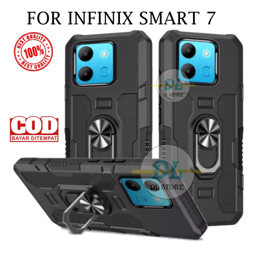 Casing Infinix Smart 7 Hard Case Ring Armor Robot Case Kickstand Hybrid/Hit Ring Case