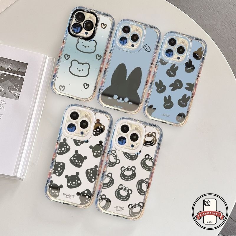 Casing Kartun Lotso Winnie The Pooh Fashion Kompatibel Untuk IPhone 15 11 14 12 13 Pro Max XR X XS Max 8 7 6s 14 15 Plus 7Plus SE 2020 Cermin Rias Mewah Penutup Lembut Kelinci Beruang Manis