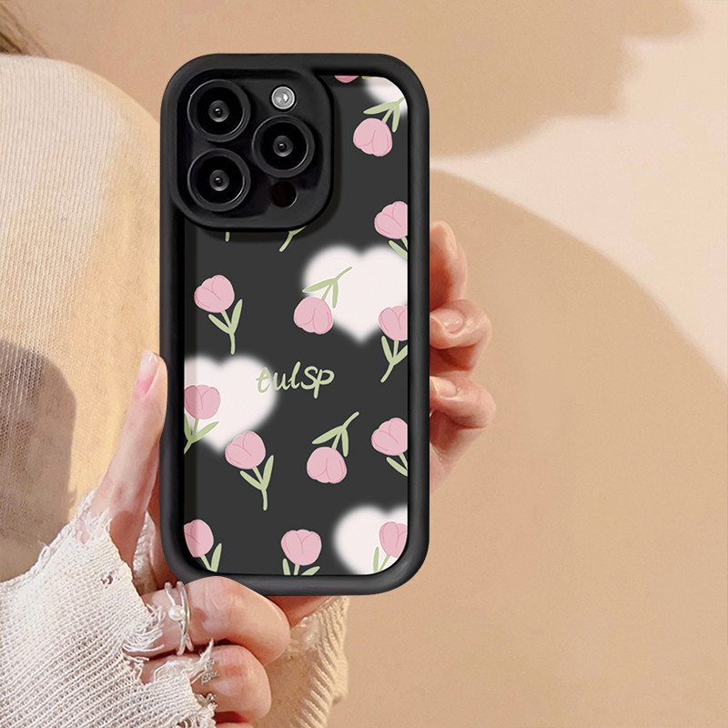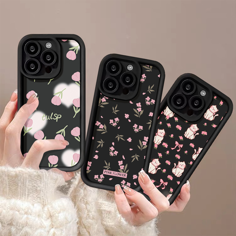 Casing Lembut Bunga Merah Muda Segar Modis Untuk OPPO A18 A17 A15 A16 A16K A17K A78 A53 A95 A54 A98 A58 A76 A74 A38 A7 A5s A3s A12 A57 A55 A54s A96 A31 A9 A5 F11 A1K A52 Reno 8T 7Z 6 5 5F 8Z Sarung Tpu Lembut Angel Eyes