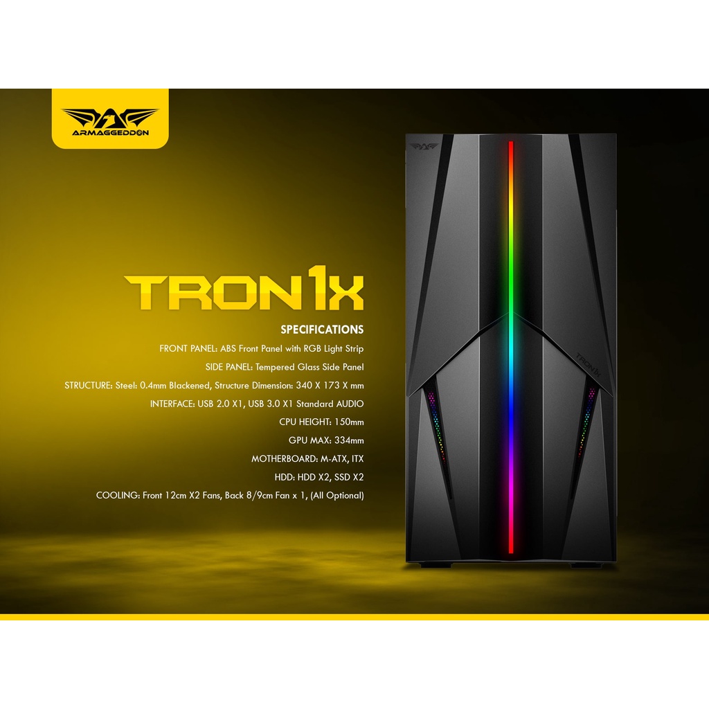 Casing PC Armaggeddon TRON 1X Casing PC Gaming M-ATX | Gaming RGB Front Panel | Support 330 GPU