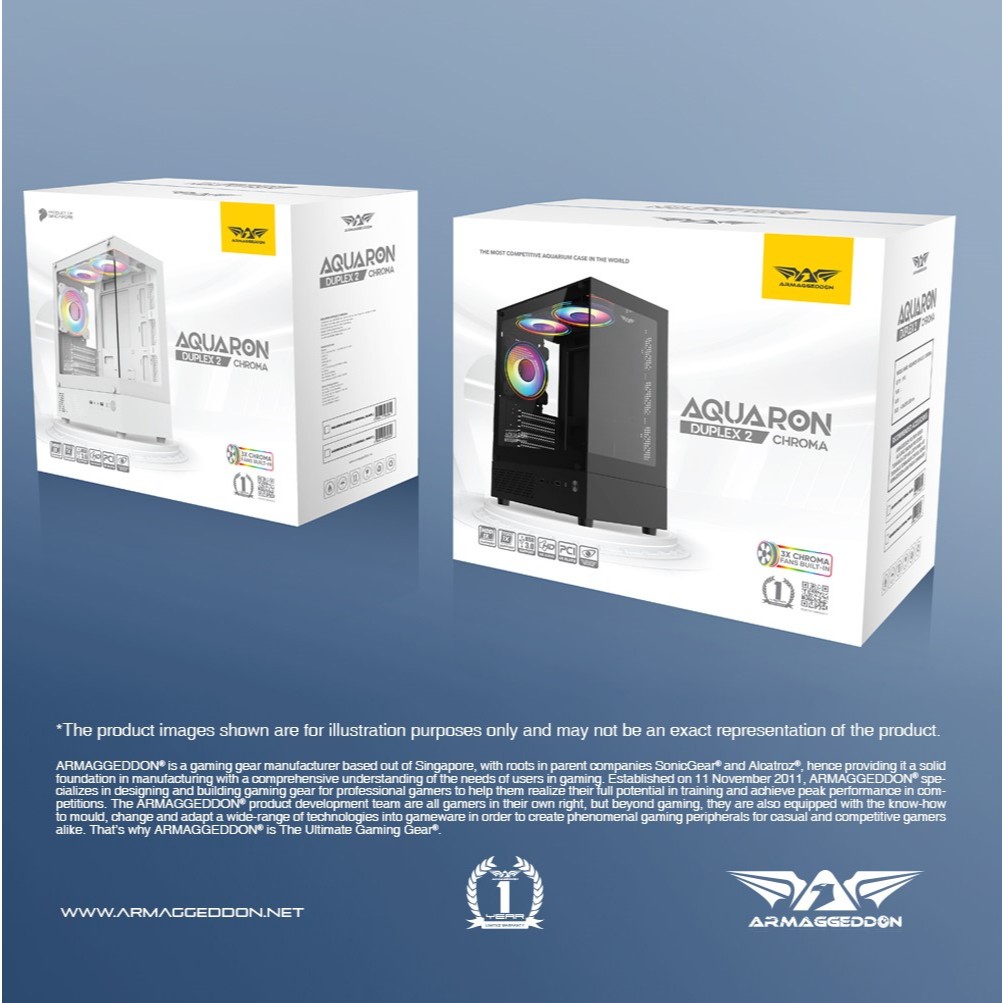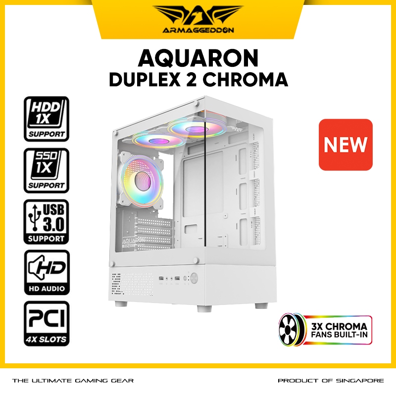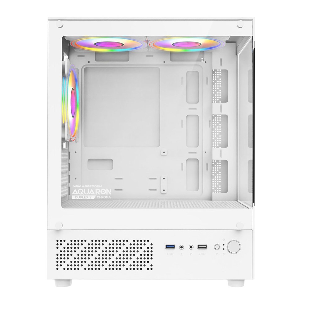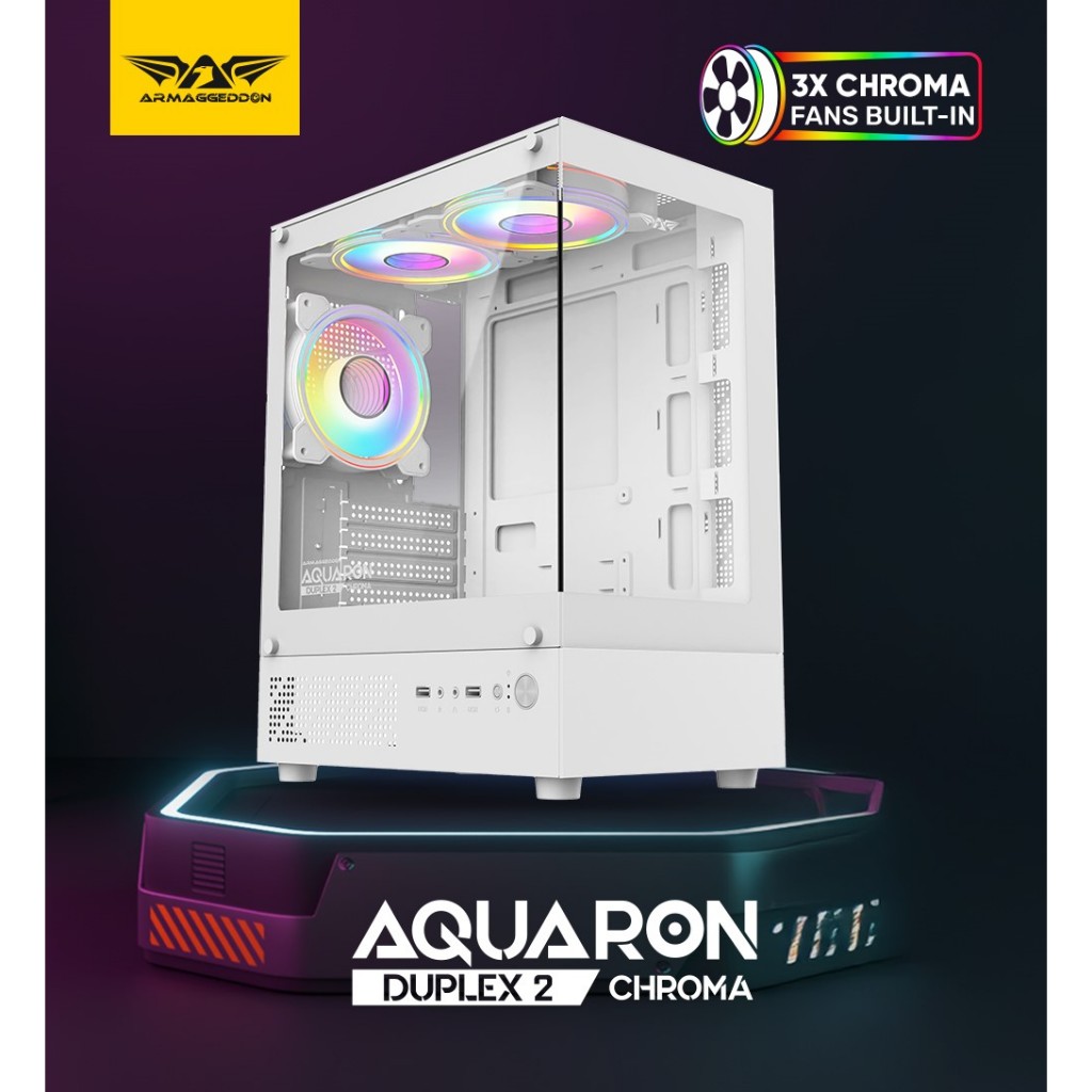 Casing PC Gaming Armaggeddon Aquaron Duplex 2 Chroma M-ATX with 3x RGB Fan Built In
