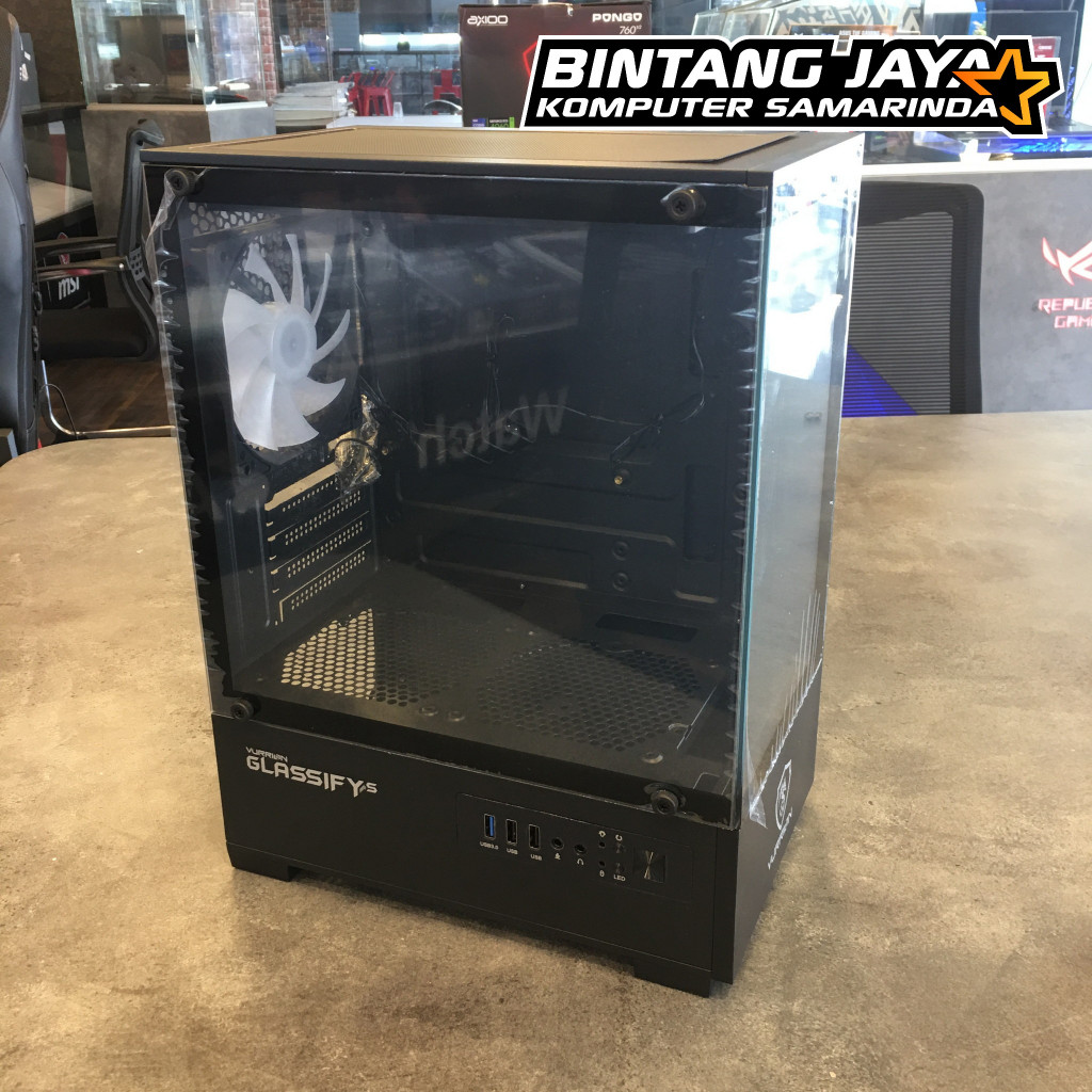 Casing PC Gaming Vurrion GLASSIFY S m-ATX + 3 Fan RGB - Putih & Hitam