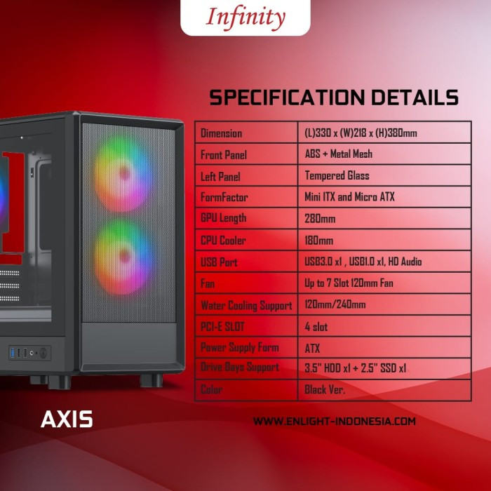 Casing PC INFINITY AXIS (M-Atx) 3 FAN RGB 3.5"x1 2.5"x1 Tempered Glass Side Panels