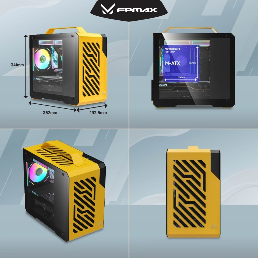 Casing PC Komputer FPMAX Air Cube G3 | Mid Tower | Micro M-ATX | 1 Fan RGB Yellow Kuning
