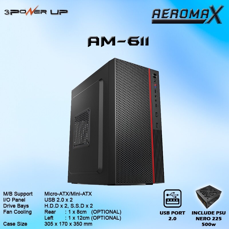 Casing Power Up Aeromax 611 Case PC Komputer Plus PSU 500W