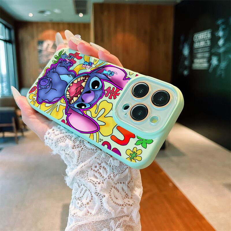 Casing Premium Magsafe silikon Case hp iPhone 16 pro max kartun Disney Stitch Case ip 11 12 13 14 15 16 PRO MAX Case Dengan perlindungan lensa mendukung Magnetic charging case full cover