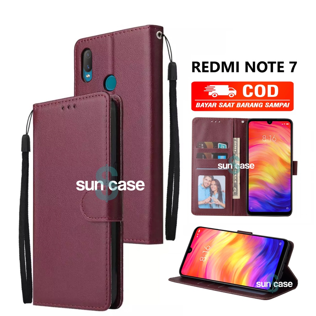 Casing REDMI NOTE 7 / NOTE 7 PRO model flip buka tutup case kulit ada tempat foto dan kartu juga tali hp flip cover