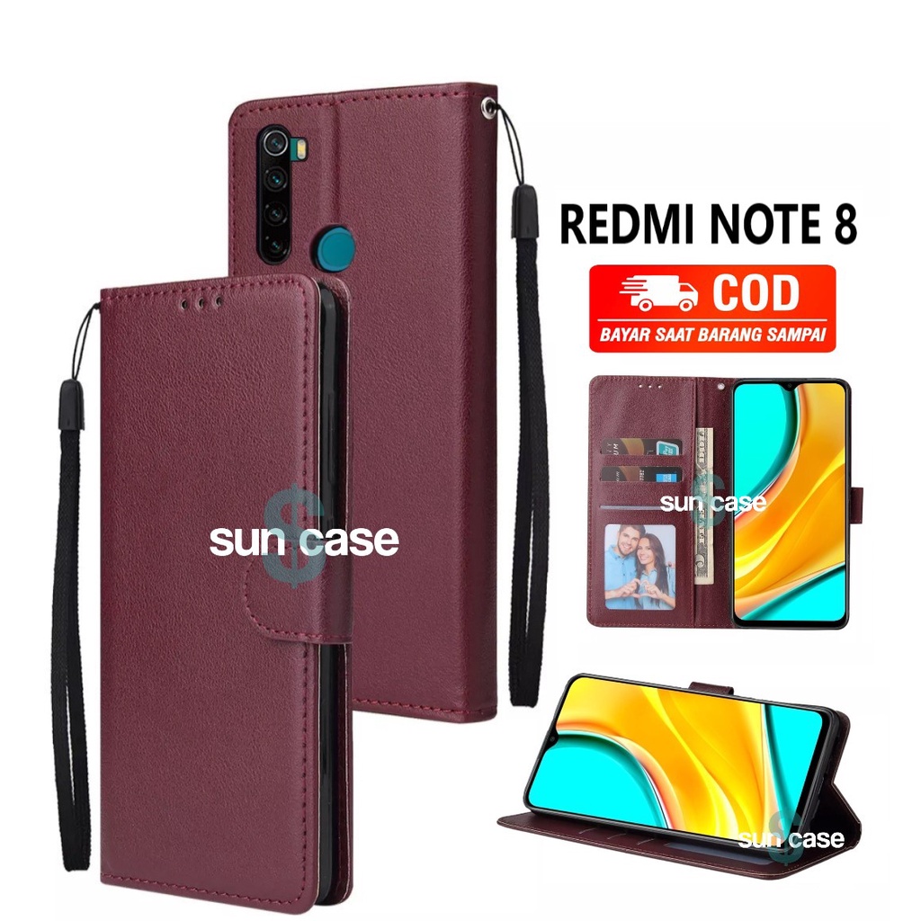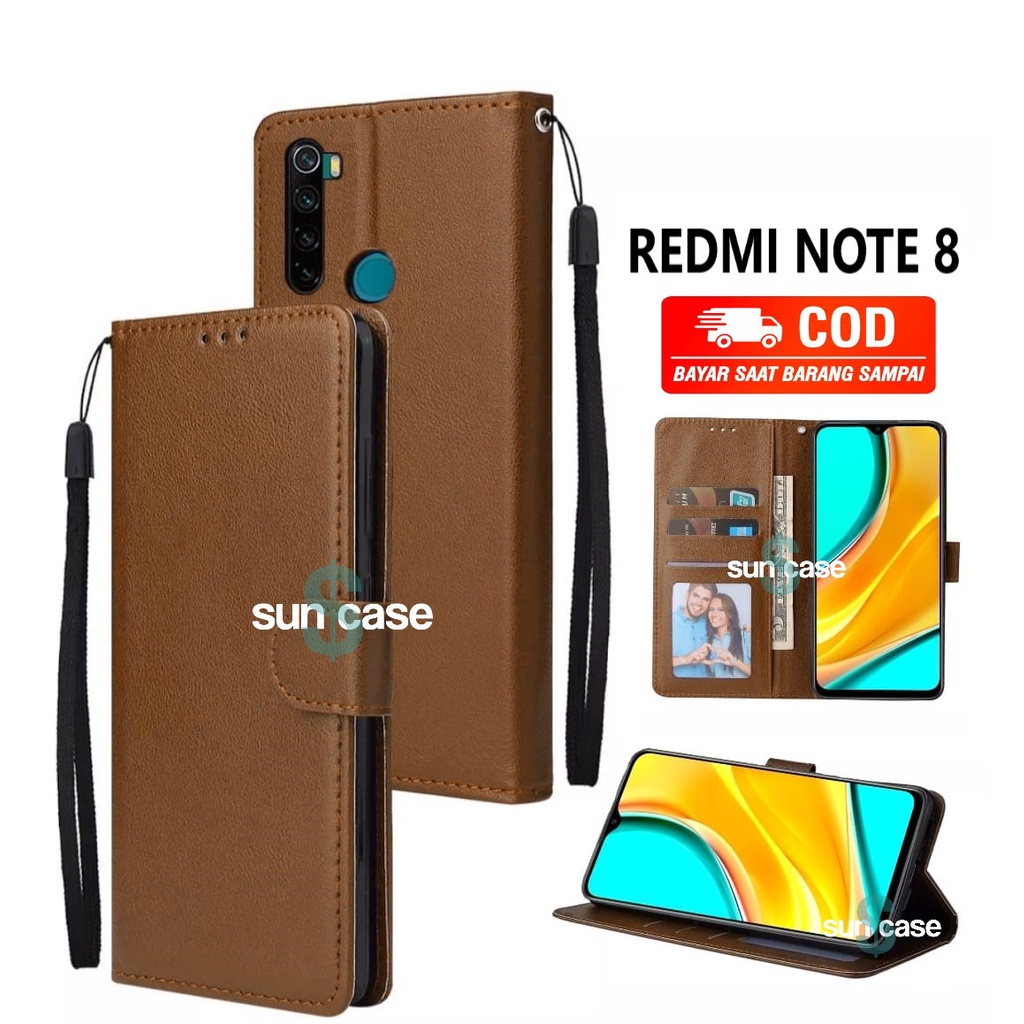 Casing REDMI NOTE 8 model flip buka tutup case kulit ada tempat foto dan kartu juga tali hp flip cover