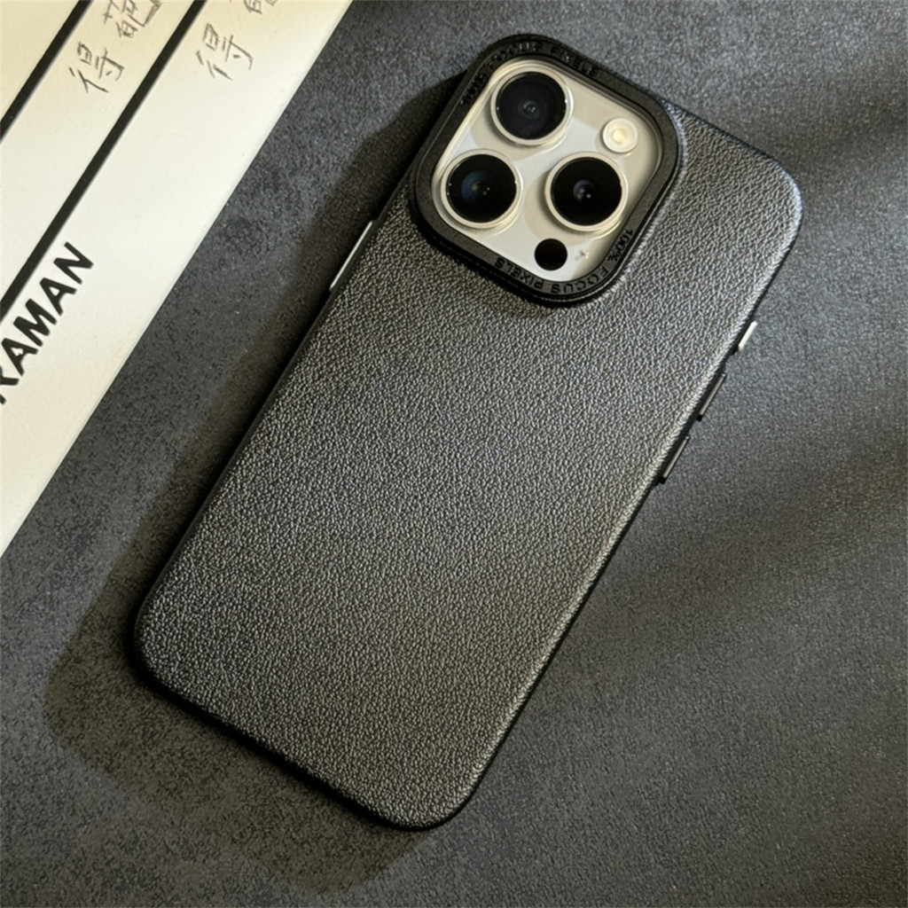 Casing Titanium Metal Lens Frame Ponsel Kulit Case Luxury Litchi Leather Phone Case For iPhone 15 14 13 12 Pro Max Case Cover Mewah