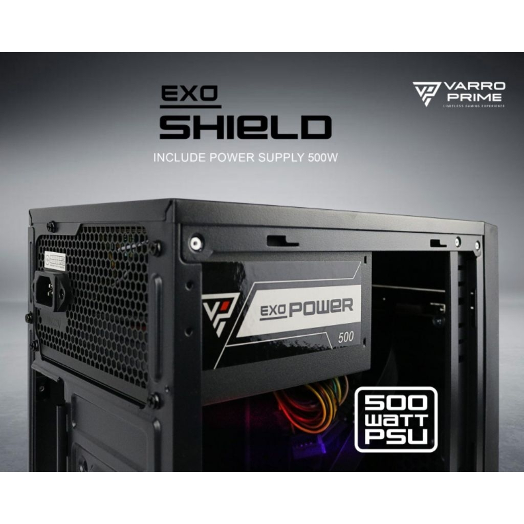 Casing Varro Prime Exo Series F17 / CR7 / Shield Support M-ATX & ITX Power Supply 500W / Office / Pc Gaming Case
