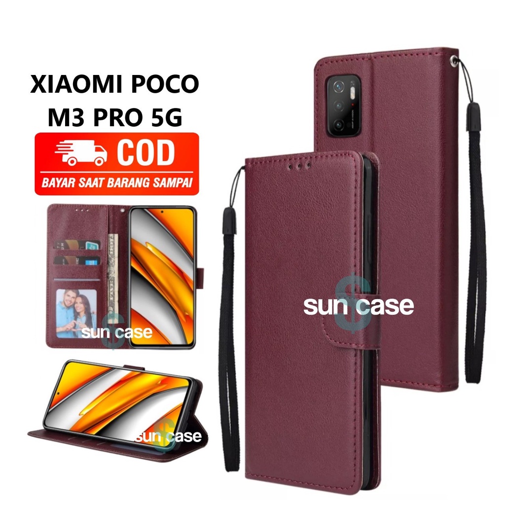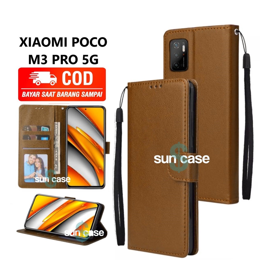 Casing XIAOMI POCO M3 PRO 5G model flip buka tutup case kulit ada tempat foto dan kartu juga tali hp flip cover
