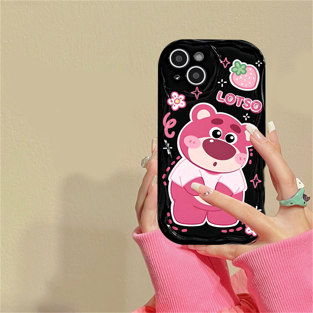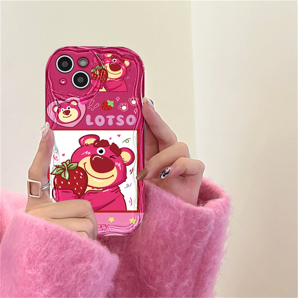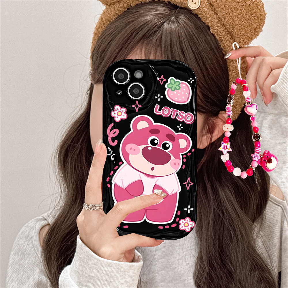 Casing hp Oppo A60 A16 A38 A18 A17 A58 A78 A17K A15 A5S A77s A79 A31 A16S A52 A1K A95 A54 A57 A7 A12 A3S A16K A74 A53 A1K A11K A76 F9 Lanyard Pink Strawberry BearCase