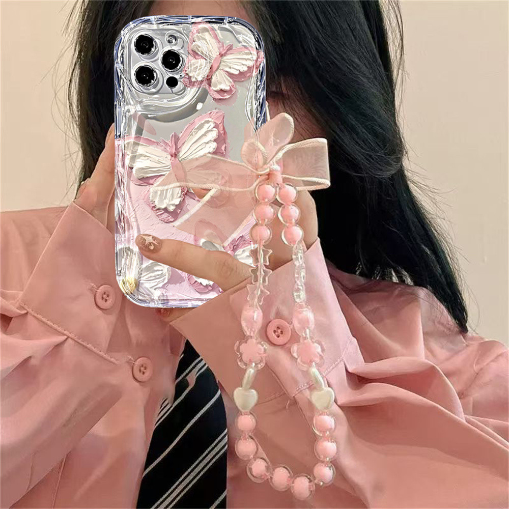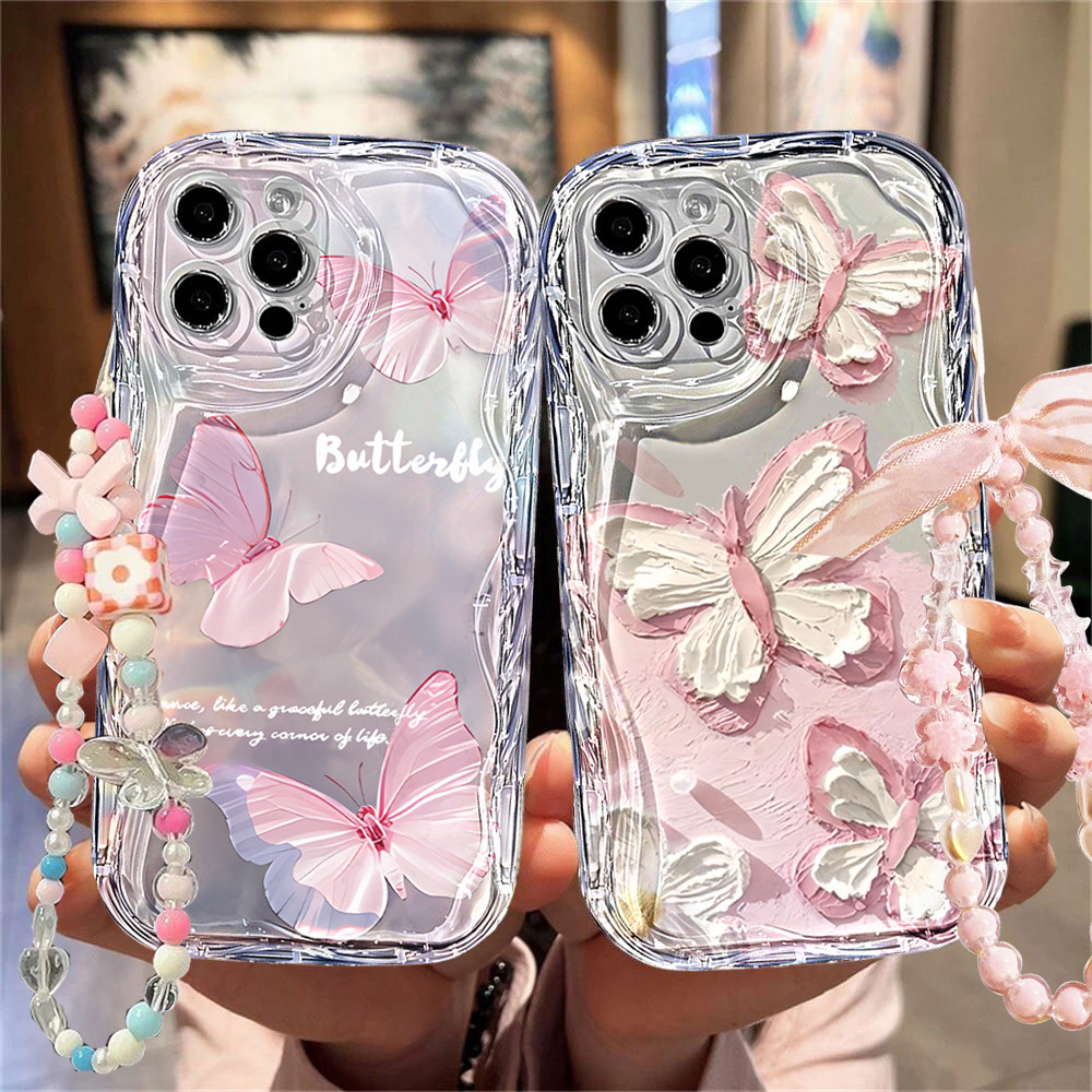 Casing hp Realme C75X Note 60X C65 C63 Note 50 C51 C51s C53 C55 C31 C11 2021 C20 C30s C17 C35 C31 C12 A1K Realme 10 5 9i 6 8i 8Pro 8 5i 7i 5 6i C21Y C25Y C15 C17 Lanyard Oil painting powder butterfly Case
