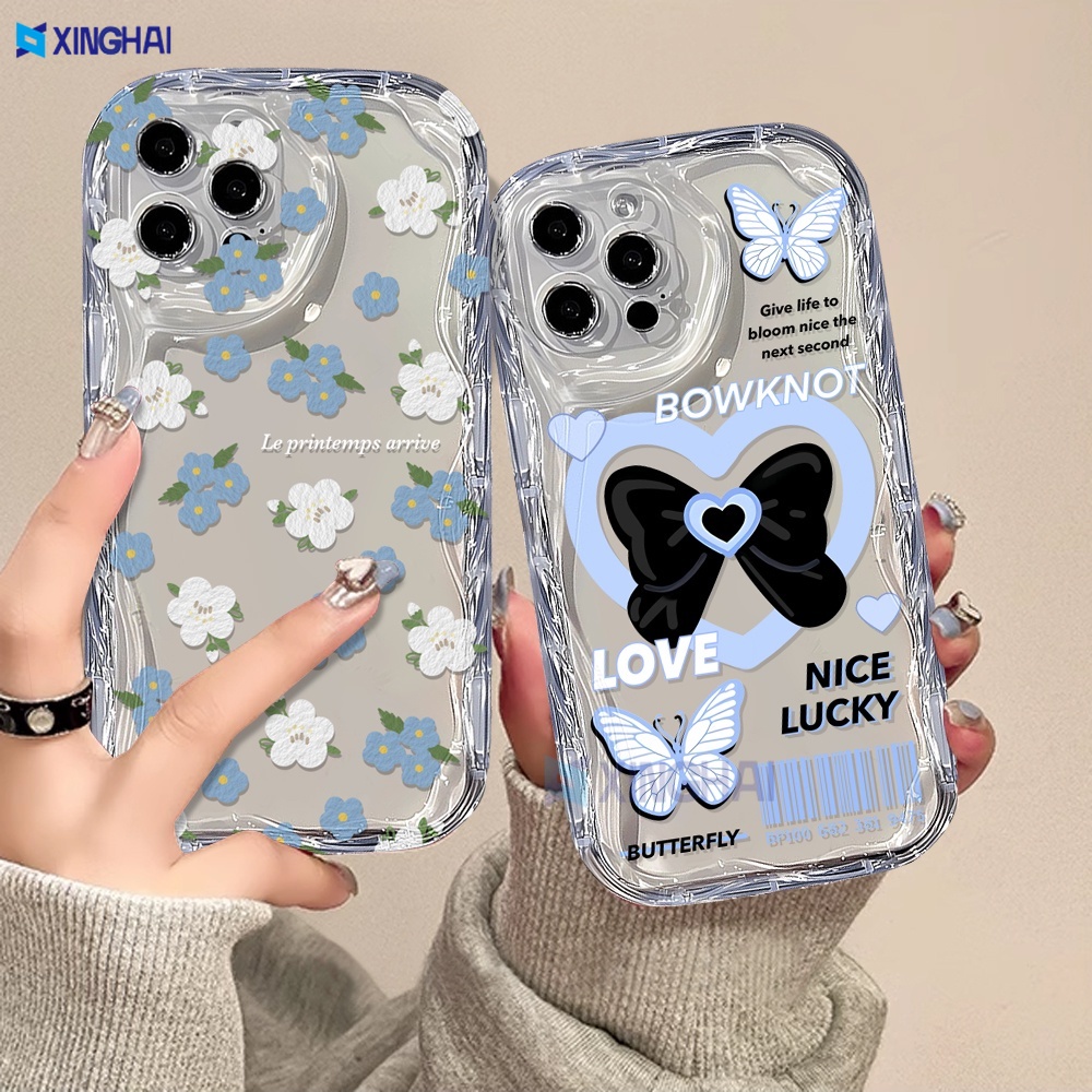 Casing hp Redmi 12 A2 A1 Note 12 Pro Redmi10 9 12C 10C 9A 10A 9C Note10 10s Note11 11s Note8 Note9s POCO X5 X3 NFC M3 Pro X3 GT Blue and white flowers and Butterfly 3D transparent Soft Wave Edge TPU Phone Case Cover Xinhai