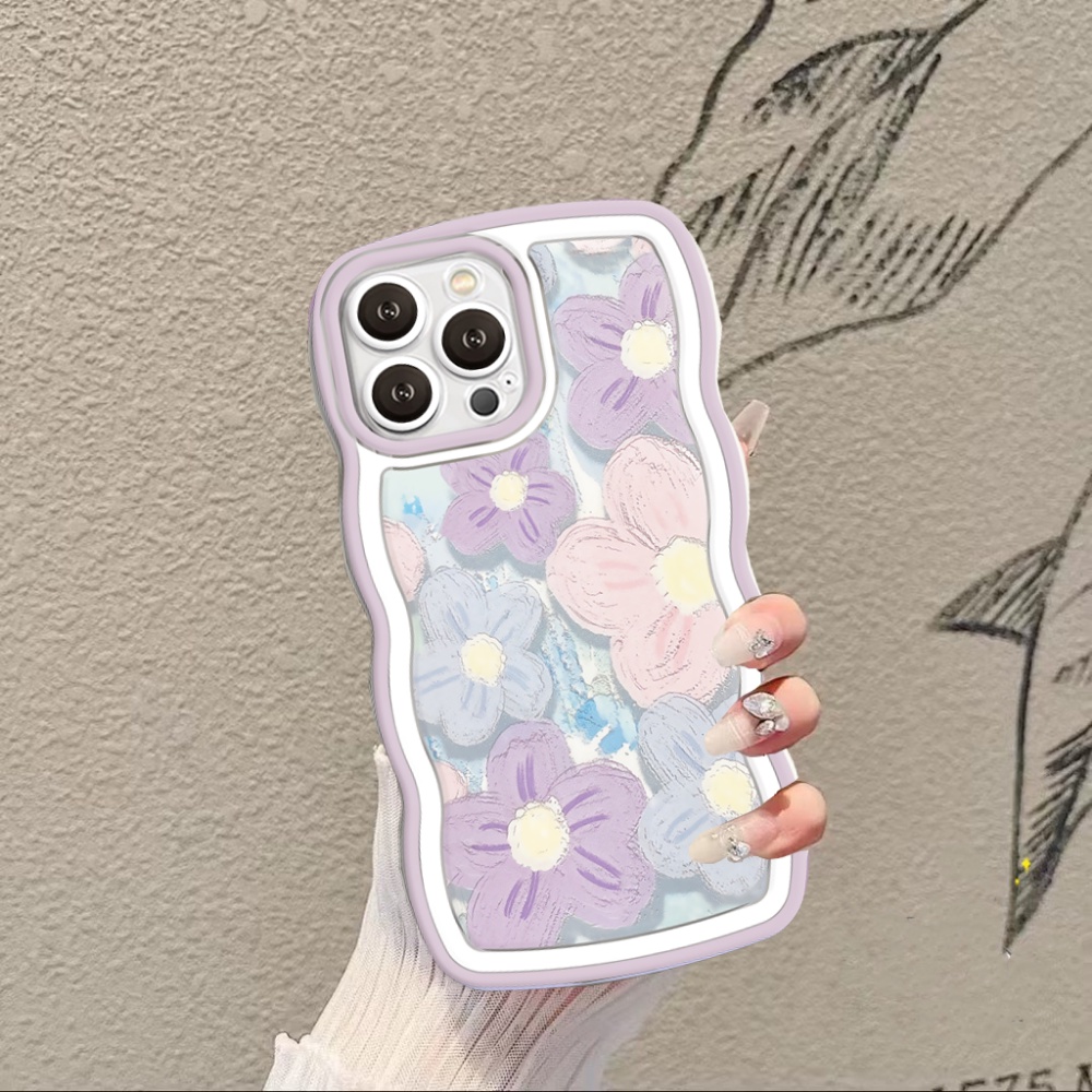 Casing hp Samsung A04E A03s A04 A12 A13 A14 A53 A23 A20 A50s A22 A02s A21s A04s A32 A52 A30s M32 A52s A51 A33 M22 A50 F22 A11 M23 A31 Fashion Floral Oil Painting Bunga Ungu Bingkai Bergelombang Soft Case PENGRUI
