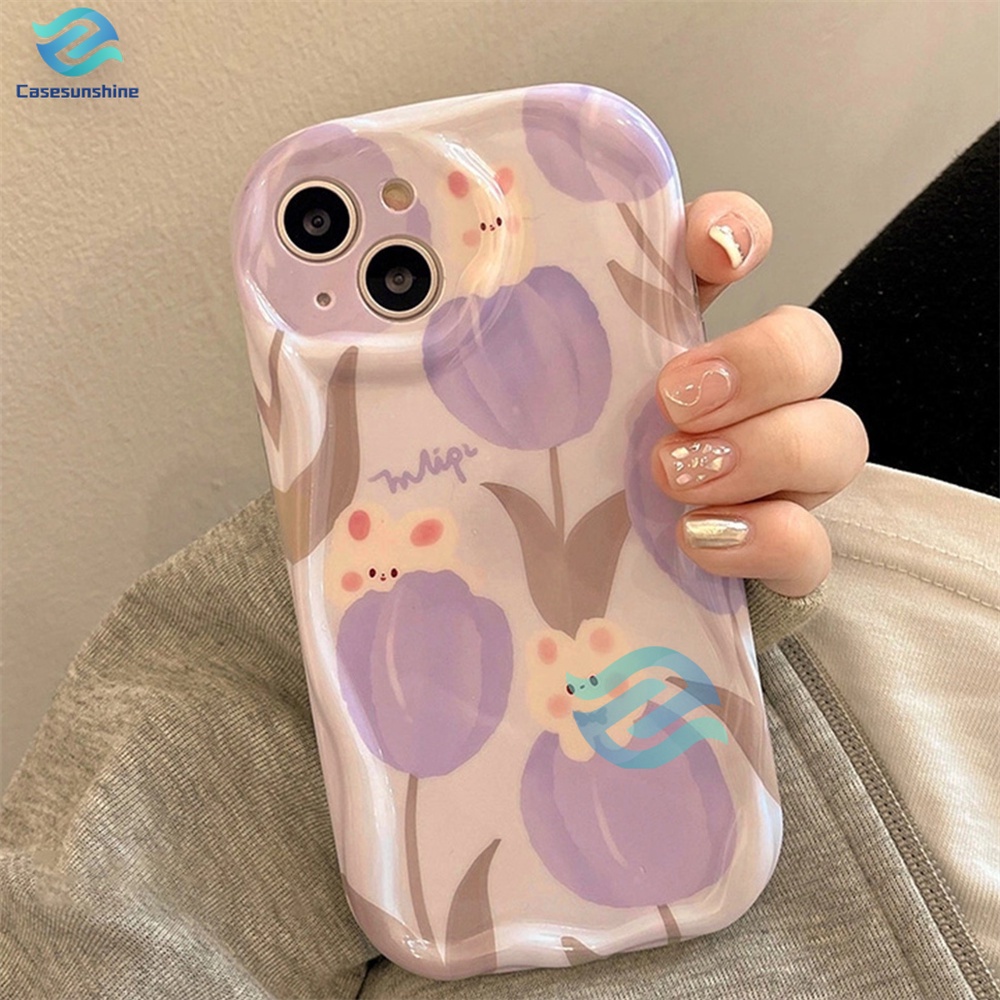 Casing hp Samsung A05S A05 A24 A14 A13 A04e A04 A04s A10s A20s A30s A21s A12 A02s A32 A03 A51 A23 A50s A52s A50 A03s A52 A11 A20 M11 M12 Tulip Bunny and oil painting flowers 3D Soft Wave Edge TPU Phone Case Cover SUNSHINE