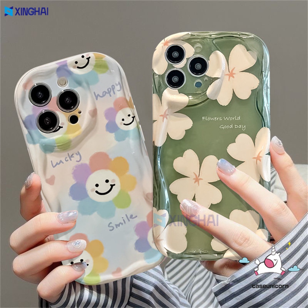 Casing hp Vivo Y17S Y27S Y36 Y20 Y02A Y02T Y35 Y11 Y17 Y16 Y21 Y15 Y12 Y30i Y22 Y15s Y20s Y22s Y21A Y12i Y21s Y15A Y33s Y31 Y51 Y91C Y91 Colorful smile flowers and green blooms 3D Soft Wave Edge TPU Phone Case Cover Xinhai