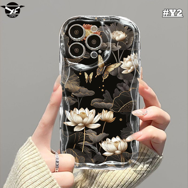 Casing hp Xiaomi Poco X6 5G X5 POCO M6 PRO C65 C55 C40 M3 Pro X3 GT X3 NFC M3 Kesing Luxury Lotus Flower Elegant Butterfly Crystal Bracelet Wavy Case XINFEI