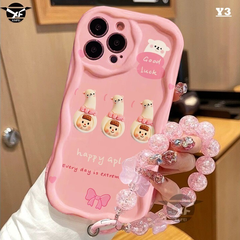 Casing hp Xiaomi Poco X6 5G X5 POCO M6 PRO C65 C55 C40 M3 Pro X3 GT X3 NFC M3 Lanyard Kesing Gadis Keberuntungan Smiley Happy Alpaca Motif Crystal Bracelet Case XINFEI