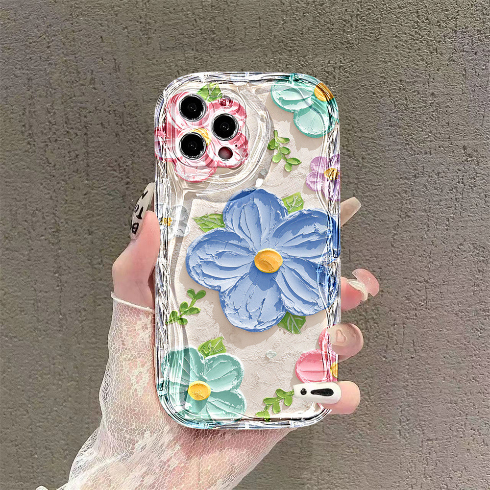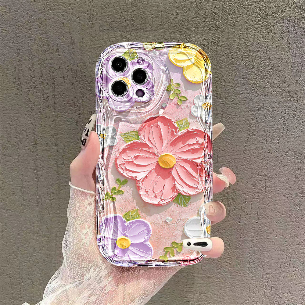 Casing hp Xiaomi Poco X6 5G X5 POCO M6 PRO C65 C55 C40 M3 Pro X3 GT X3 NFC M3 Lanyard Pink Oil on Canvas Large FlowerCase