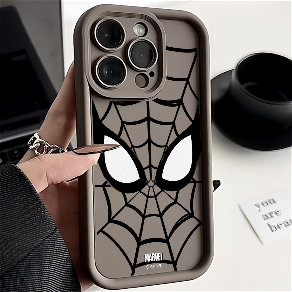 Casing hp iPhone 11 15 13 12 14 Pro Max XR iPhone 7 Plus 8 6 6S XS Max Trendy Merek Anime Marvel Spider-Man Couple Case DEVI