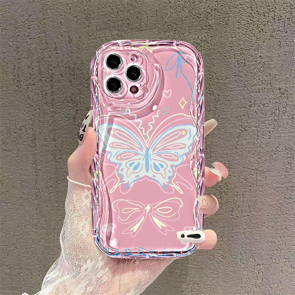 Casing hp iPhone 11 iPhone 7 Plus 12 14 13 15 Pro Max iPhoneXR 8Plus X XS Max iPhone 6s 7 8 6 Plus SE 2020 Lanyard Black Fluorescent Butterfly LANYINCase